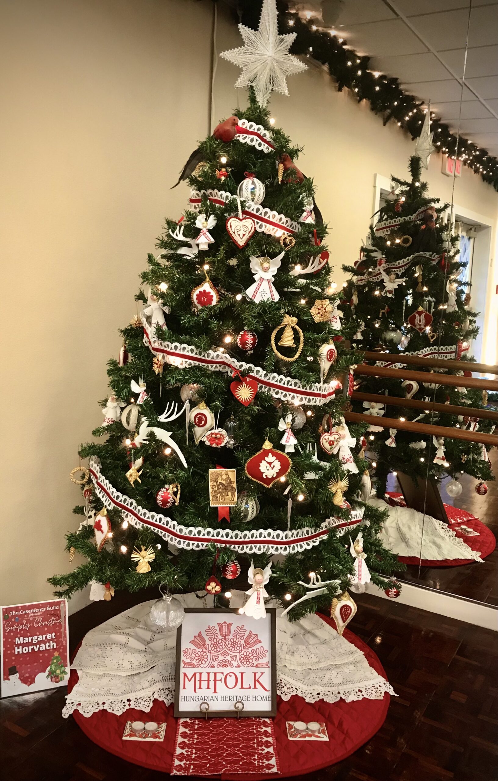 A karácsonyi kiállításon minden éveben helyet kap egy magyar kézműves karácsonyfa, évente változó tematikával. Egyik évben például csak mézeskalács díszeket akasztottak rá. Az idei fa piros és fehér színekben pompázik. Kézzel festett üveggömbök, filc és szalma díszek ékesítik. A fán lévő angyalkák igazi különlegességek, a kezdetektől fogva minden évben felkerülnek a fára és természetesen népi motívumok jelennek meg a ruháikon. Közel állnak Margit néni szívéhez. A fára felhelyezett díszeket évek óta tudatosan gyűjtötte, otthoni kézművesektől vásárolta és készítette. Unokahúga a Hollóházi Porcelángyárban dolgozott, így segítsége a festésben. A magyaros karácsonyfa alá szőttes kerül.