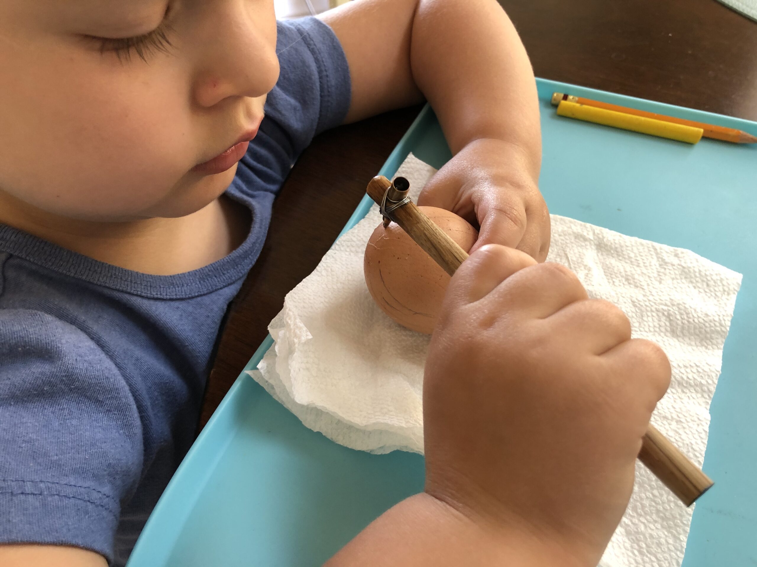 A hétvégi foglalkozás pedig olyannyira meghozta a kedvünket, hogy még húsvét hétfőjén is tojást írtunk a lányommal. Persze, a miénk nem lett annyira művészi, de a kicsi kezeivel nagyon ügyesen karcolgatta rá a viaszt. Közben elgondolkoztam azon, hogy talán több ilyen élményre van szükség, amelyek az évek során megmaradnak benne, közelebb hozzák azt a kultúrát, aminek ő is valamilyen szinten része és ez a másmilyenség érdekes lesz annyira, hogy ő is át akarja adni a saját gyerekeinek.