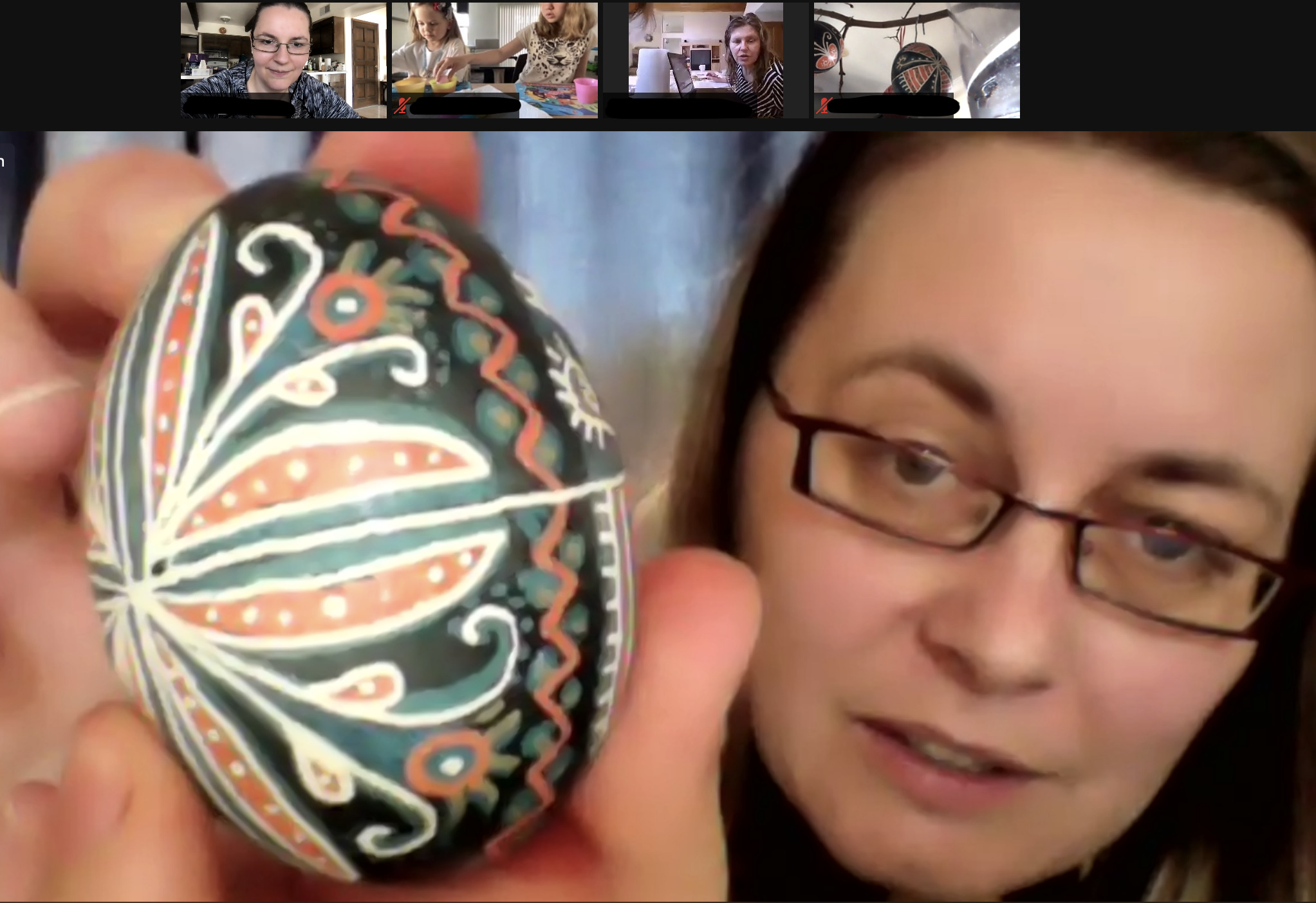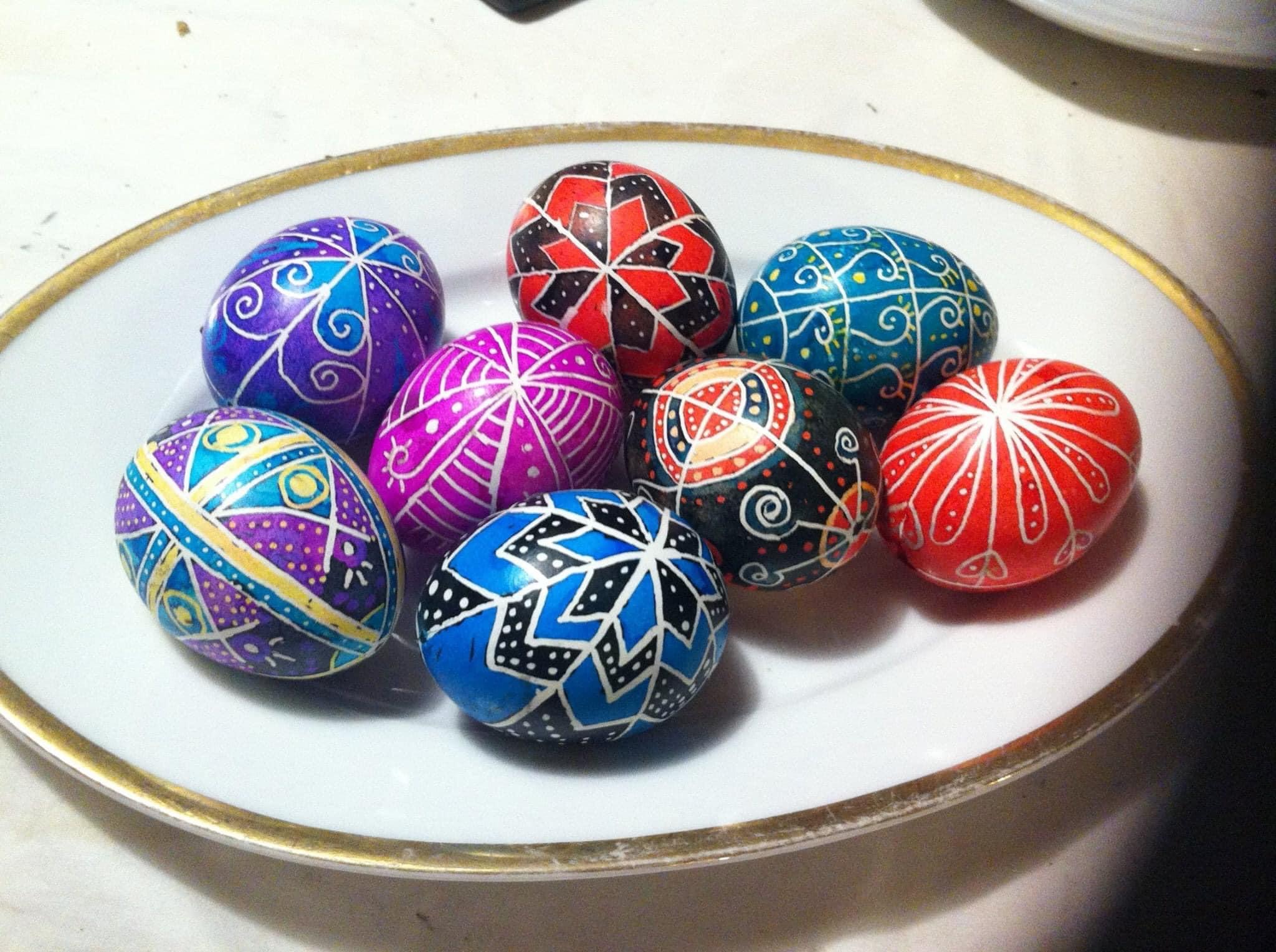 Vendégünk Veres Mónika volt, székelyföldi származású zenész, aki hobbi szinten ugyan, de tökéletesítette a tojásfestési technikáit, ráadásul a modernet és hagyományosat ötvözve, különleges tojáskölteményeket készít. Ő volt az, aki idén bemutatót tartott és tanítgatott gyereket, felnőttet a viasszal írott tojás művészetére. Előző években összegyűltünk és kisebb csoportokban festettünk tojást többféle technikával. Egyik csoportban a berzselés technikáját mutatta be valaki, másik csoportban a viaszos tojásírást, harmadik csoportban modern technikákat tanulhattunk.